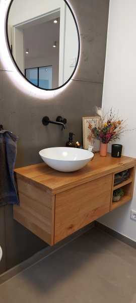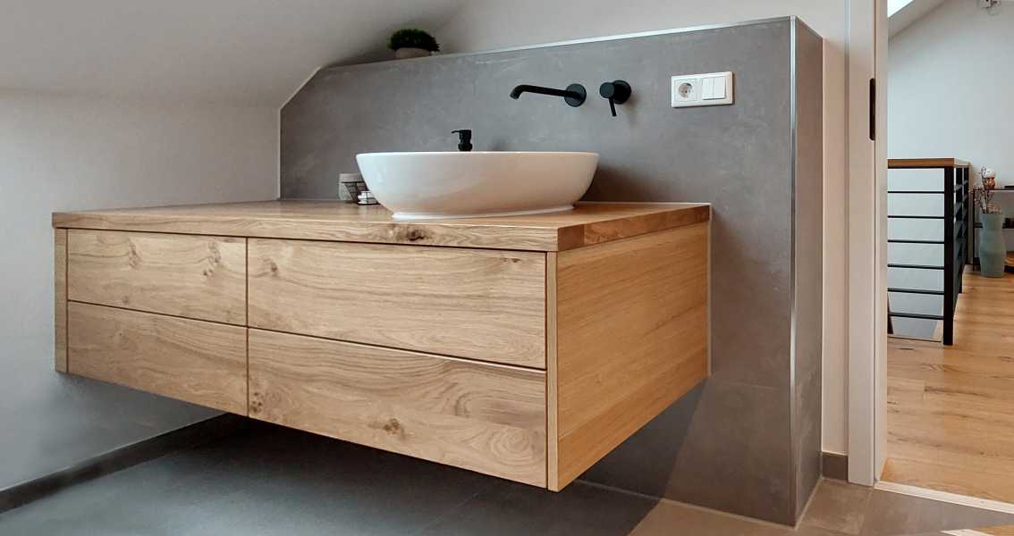 Von uns entwickelte Badmöbel vereinen Funktionalität und außergewöhnliches Design. Gemeinsam mit Ihnen finden wir auch für schwierige Raumsituationen gelungene Lösungen und setzen diese dann in unserer eigenen Möbelwerkstatt um.